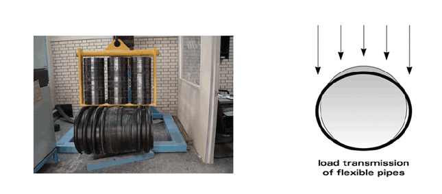 Elastic pipes can react to changes in their environment. Due to deformation performance, the load is distributed to its surrounding and the force acting on the pipe will be diminished within a short time. There is a balance in the area around the pipeline and the deformation comes to a standstill. Plastic pipes react in a flexible manner towards static loads, while the loads do not concentrate themselves on the pipes, but are diverted to the surrounding soil. Flexible pipes function, even when other rigid pipe systems break.