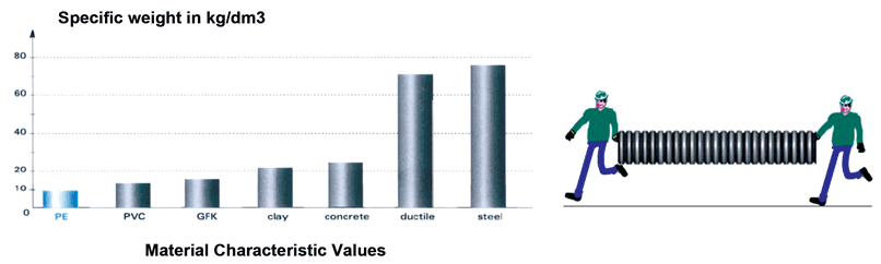 Since the pipelines are profiled on the outside, these profiled pipes can fix the pipes in the soil. There are very few axial extensions in the pipeline and HDPE pipes are nearly unaffected by temperature variations.